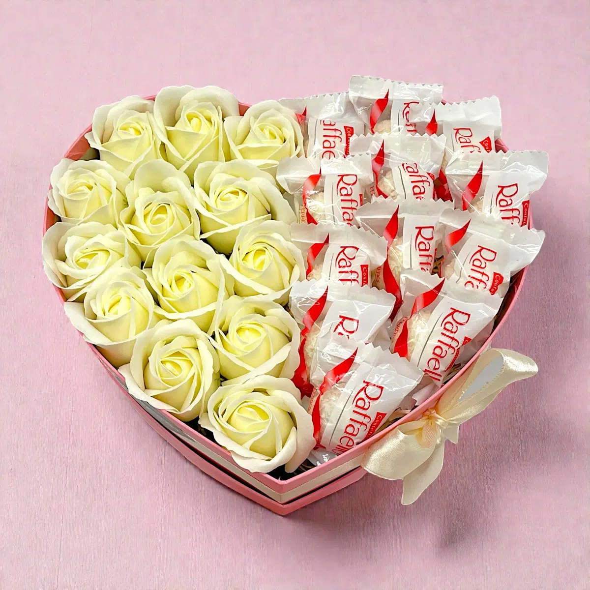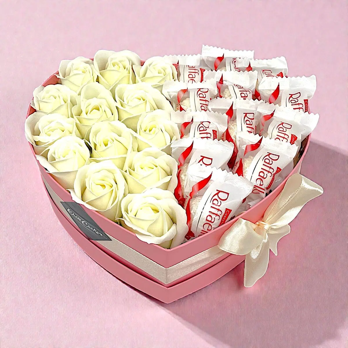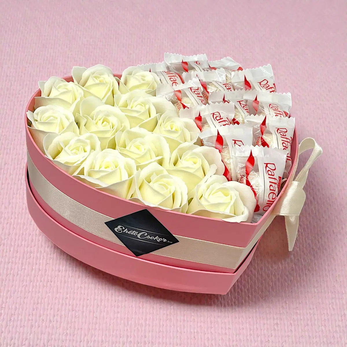 Classic szív box – Raffaello + krém rózsa