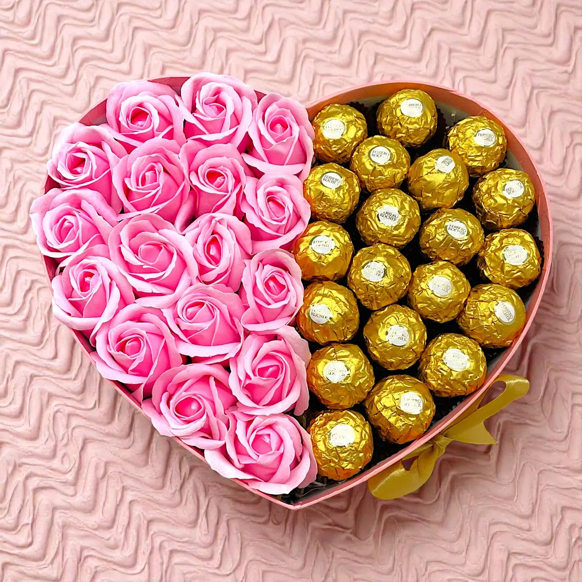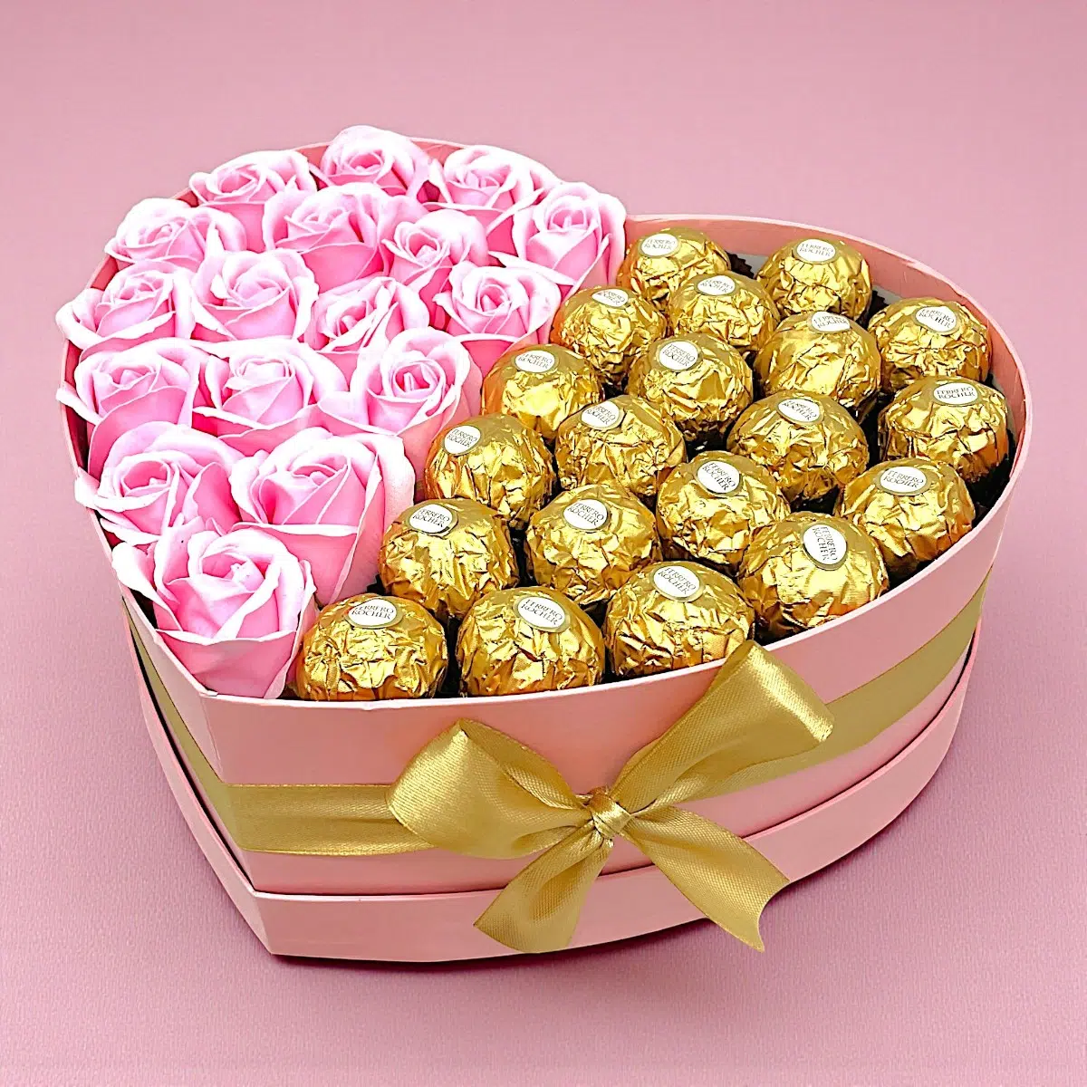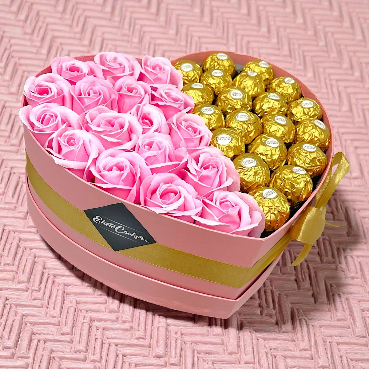 Extra szív box – Ferrero + pink rózsa